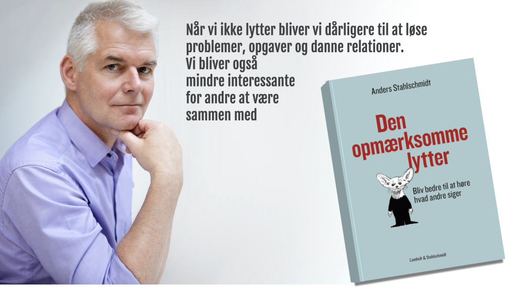 Du er inviteret til at deltage i et gratis webinar, hvor Anders Stahlschmidt fortæller om sin bog “Den opmærksomme lytter – Bliv bedre til at høre, hvad andre siger”. Det er tirsdag den 30.5. kl 10.