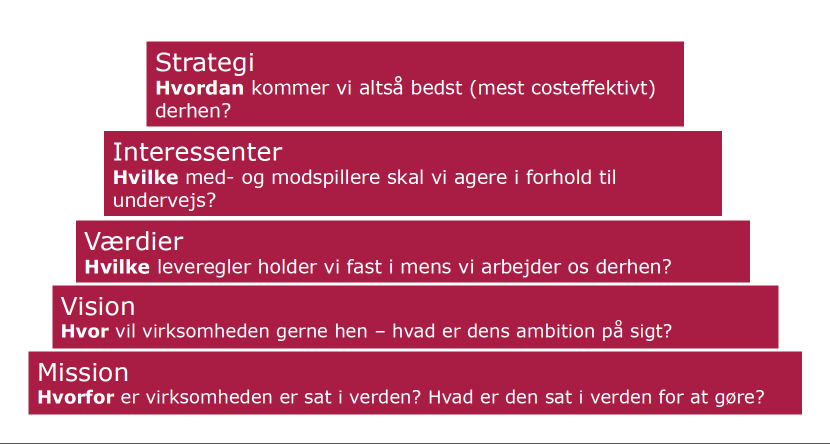 *)Hvad betyder mission, vision og værdier for kommunikationsarbejdet? Hvad er forskellen på en strategi og en politik? Hvordan fungerer en interessentanalyse i praksis? Hvad betyder issue management, crisis management, change management osv.? Hvorfor taler alle om change management - og kan man ikke bare skrotte alle de buzzwords, der bruges i kommunikation?
